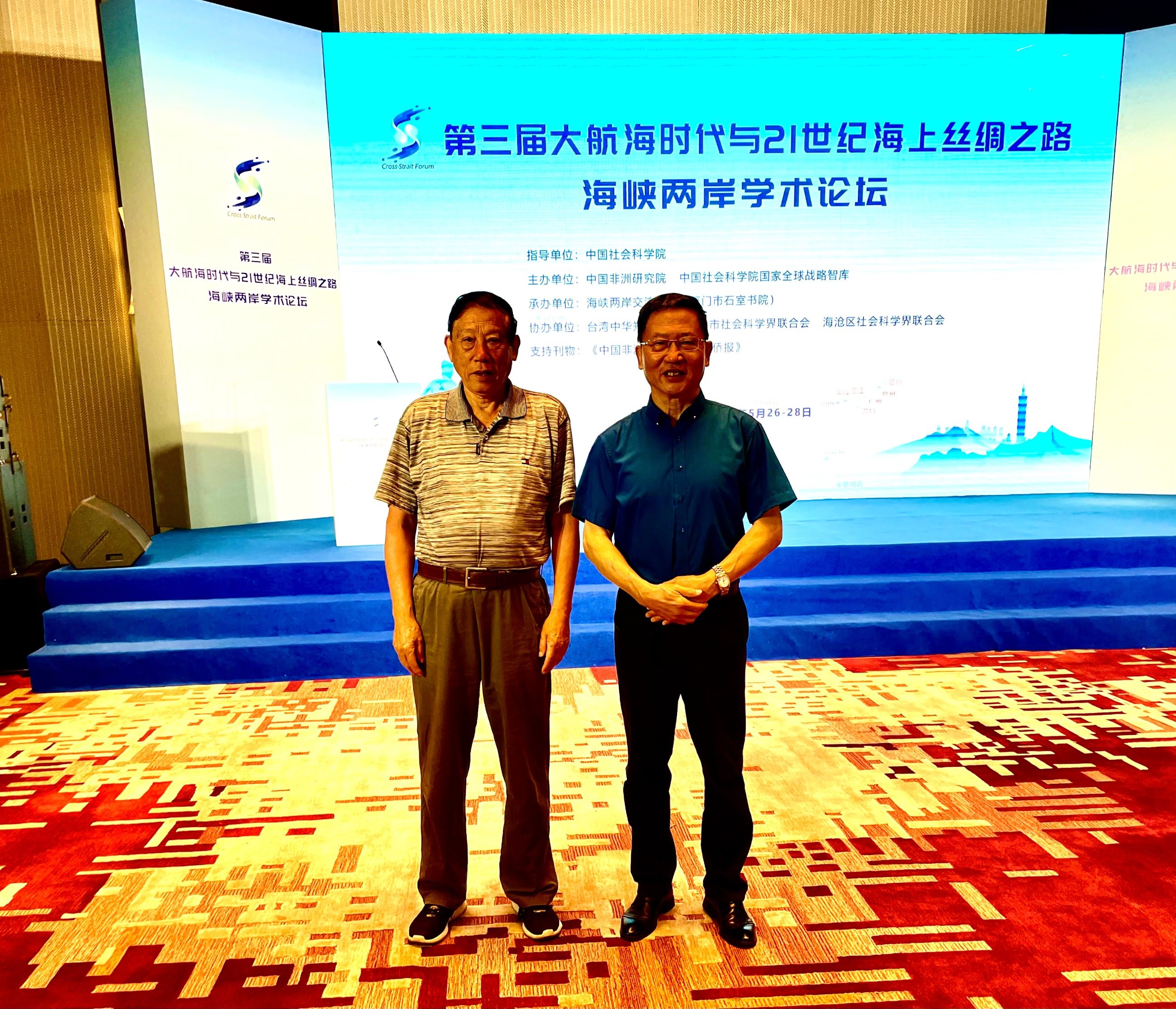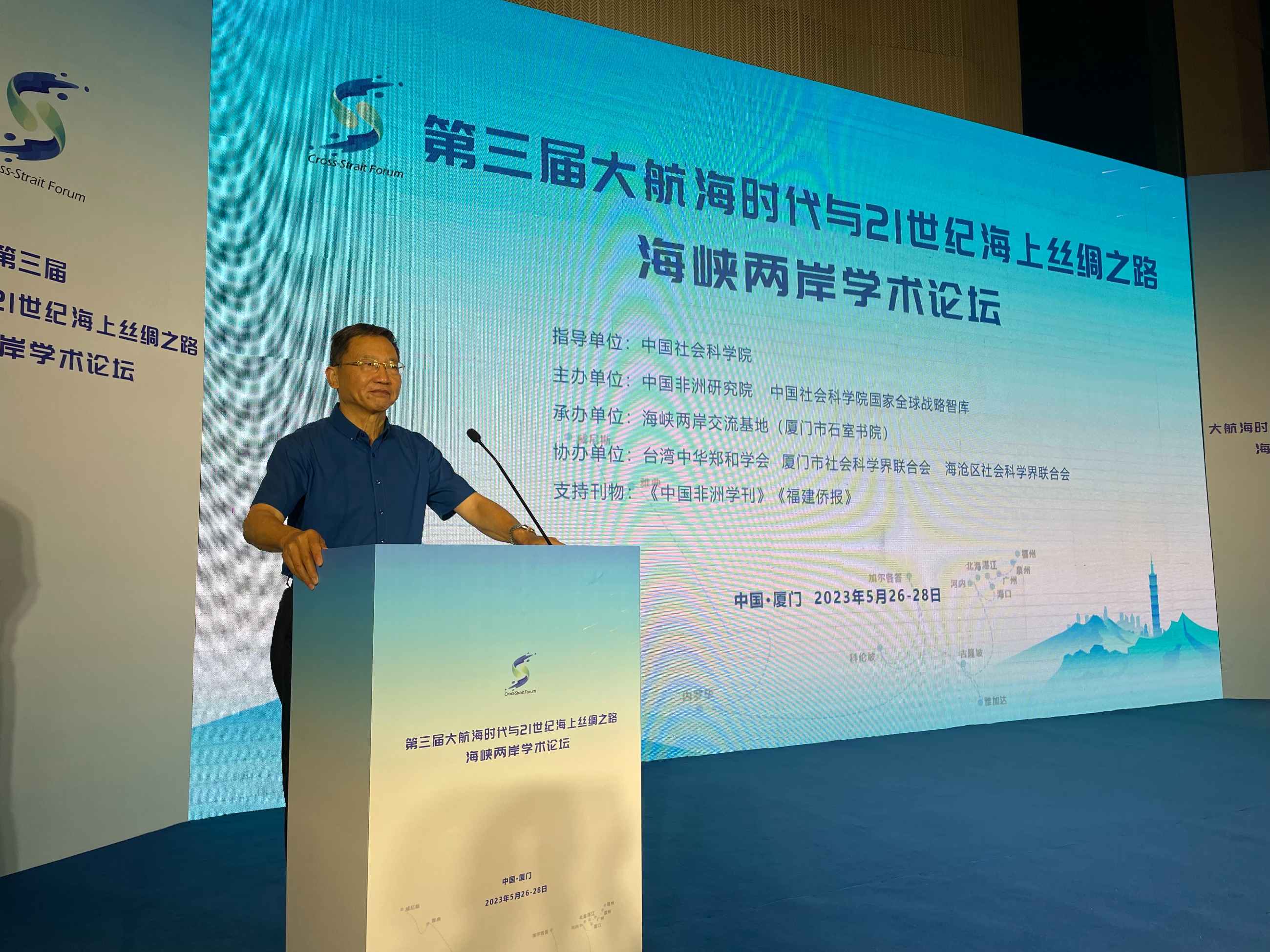 5月27日,江苏省郑和研究会赵志刚教授应邀出席第三届“大航海时代与21世纪海上丝绸之路”海峡两岸学术论坛,江苏省郑和研究会连续三届应邀出席并做学术报告。两岸专家学者齐聚一堂,集思广益,建言献策,旨在为共建“一带一路”走深走实、促进两岸融合发展、推动构建人类命运共同体提供智力支持和学术支撑。来自海峡两岸约50家研究机构和高校的80余位专家学者参加此次论坛。